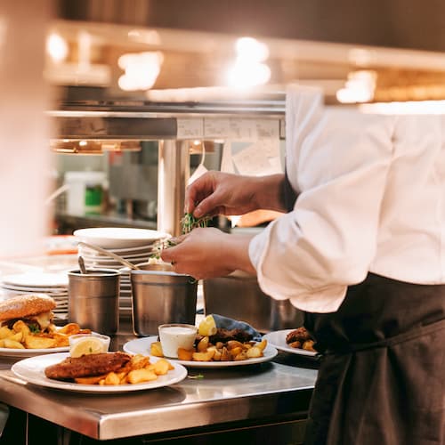 Kalte & warme Snacks, Hauptgerichte, Getränke und Bier vom Fass